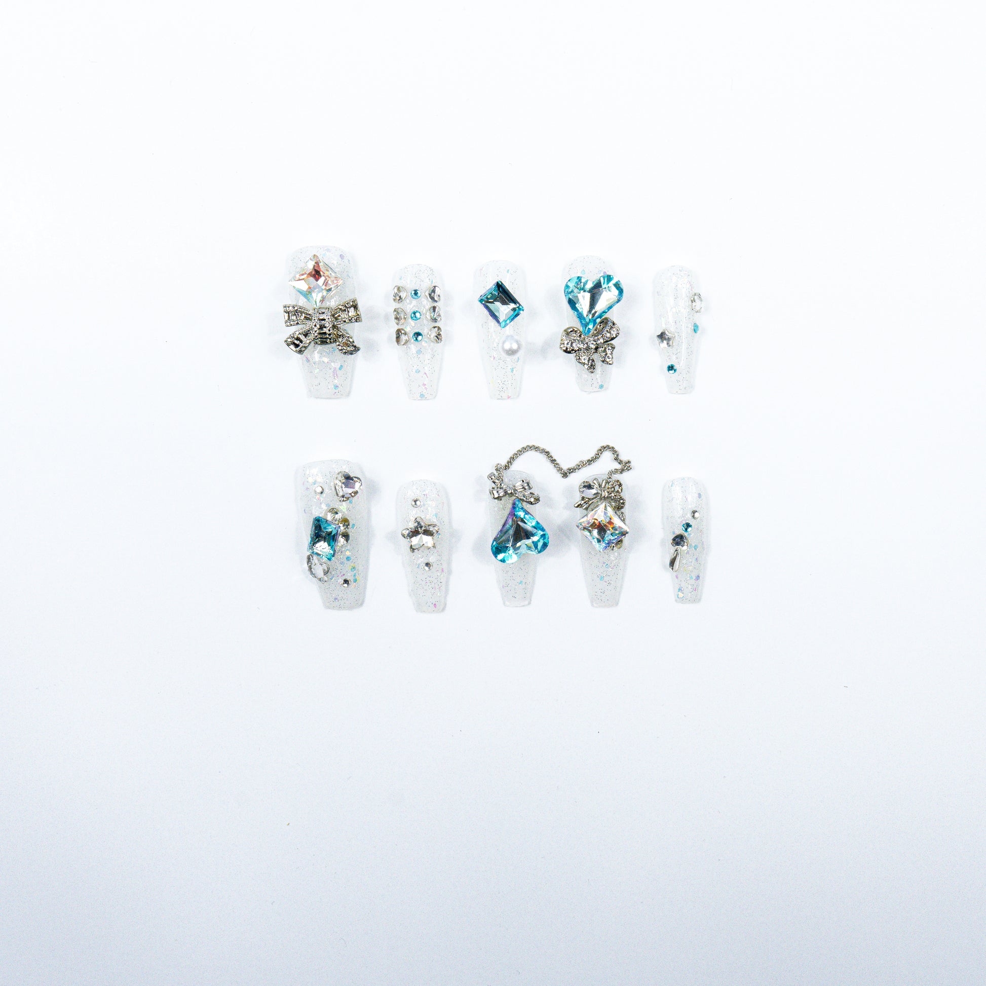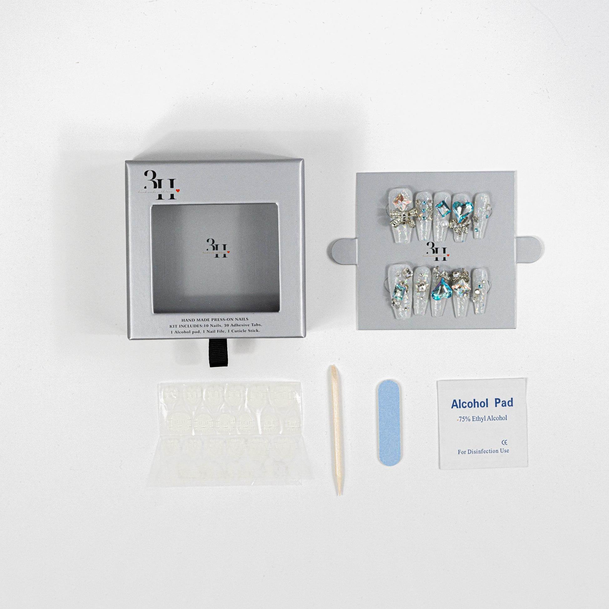 3H Luxury Handmade Press-on Nails - Crystal Blue Glam