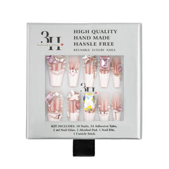 INCLUDES: 10 handmade press-on nails | 1 alcohol pad | 24 adhesive tabs | 1 ml nail glue | 1 cuticle stick | 1 nail file