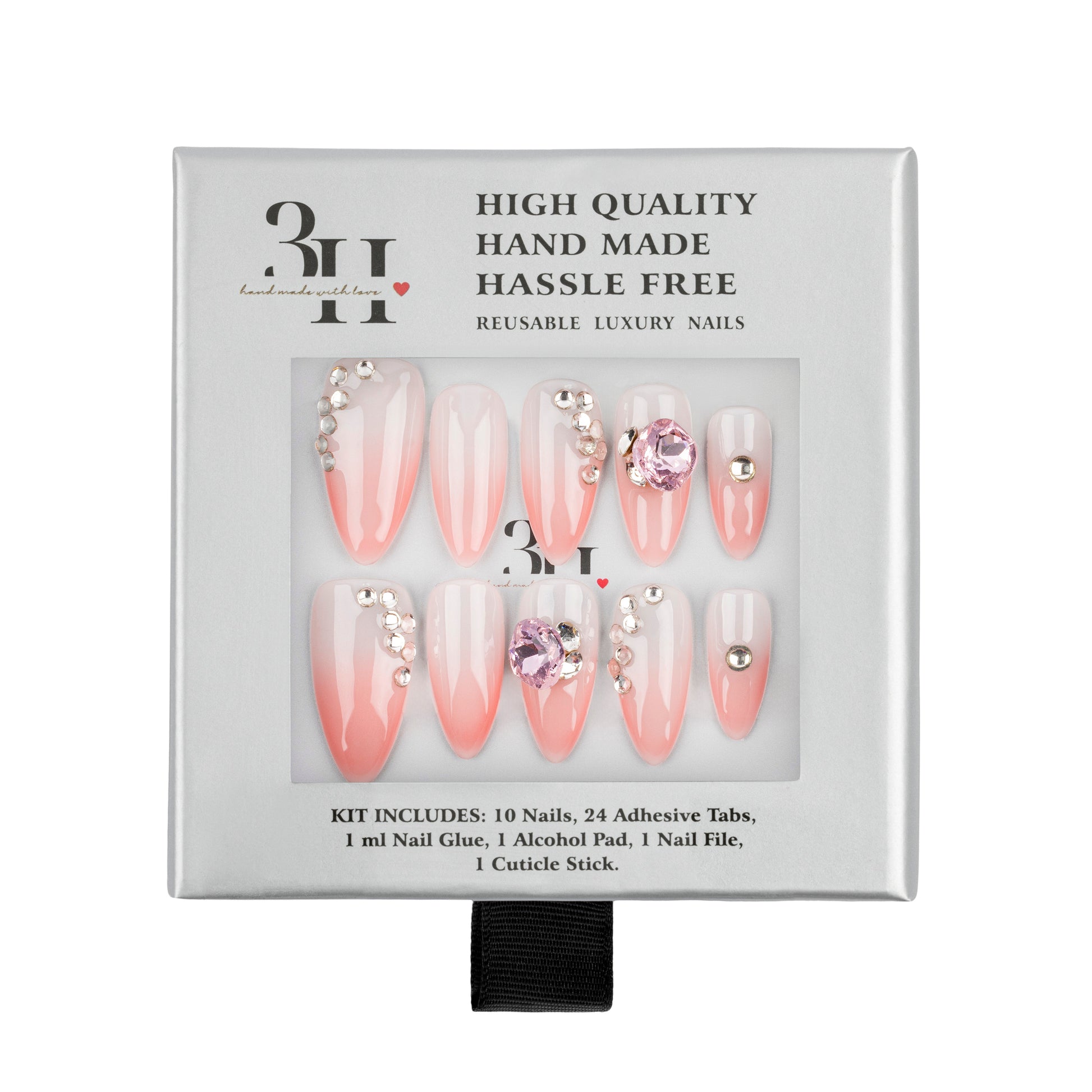 3H Luxury Handmade Press-on Nails - Blush Gem Elegance Nails