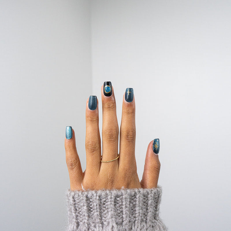 Adhesive Tabs: Select size, apply to nail, press on for 10–15 seconds